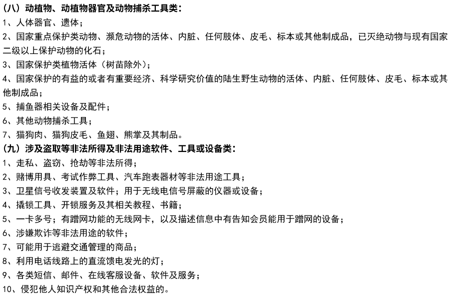 食链平台禁售商品明细