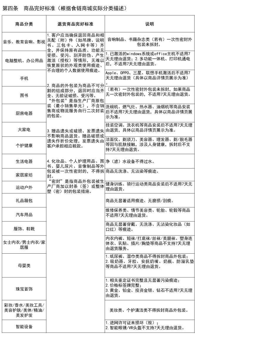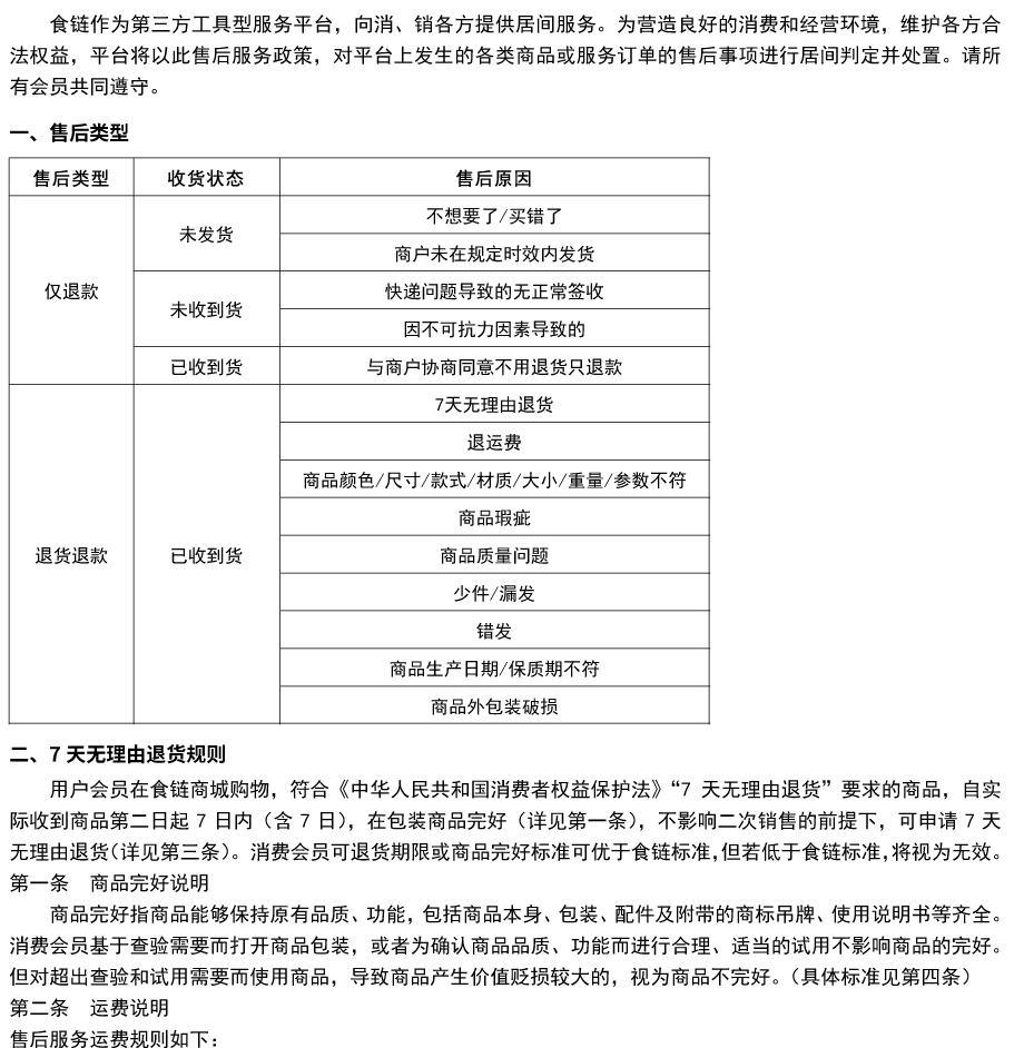 食链商城售后服务政策