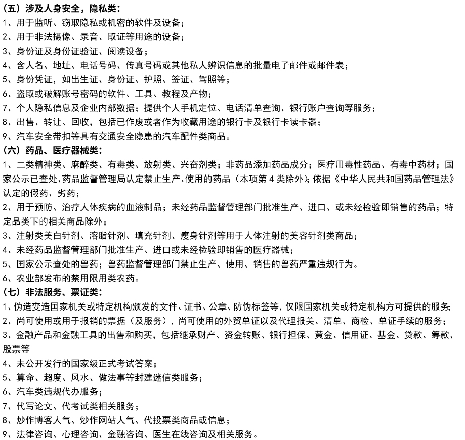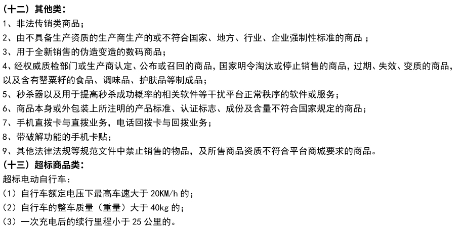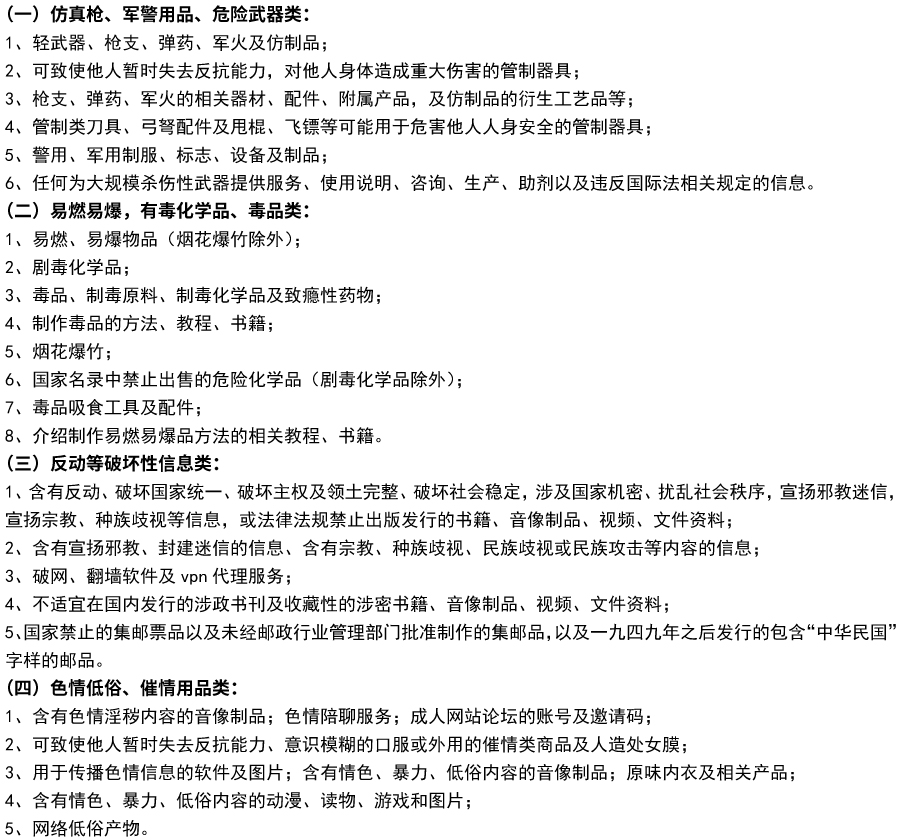 食链平台禁售商品明细